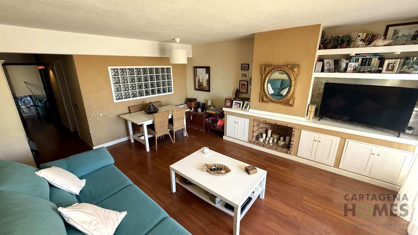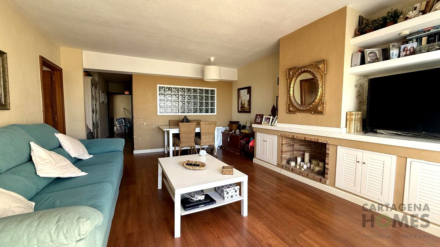 Dentro, el salón invita a quedarse. Tiene chimenea, de las de verdad, para esos días en los que el viento sopla fuerte y La Manga se vacía.